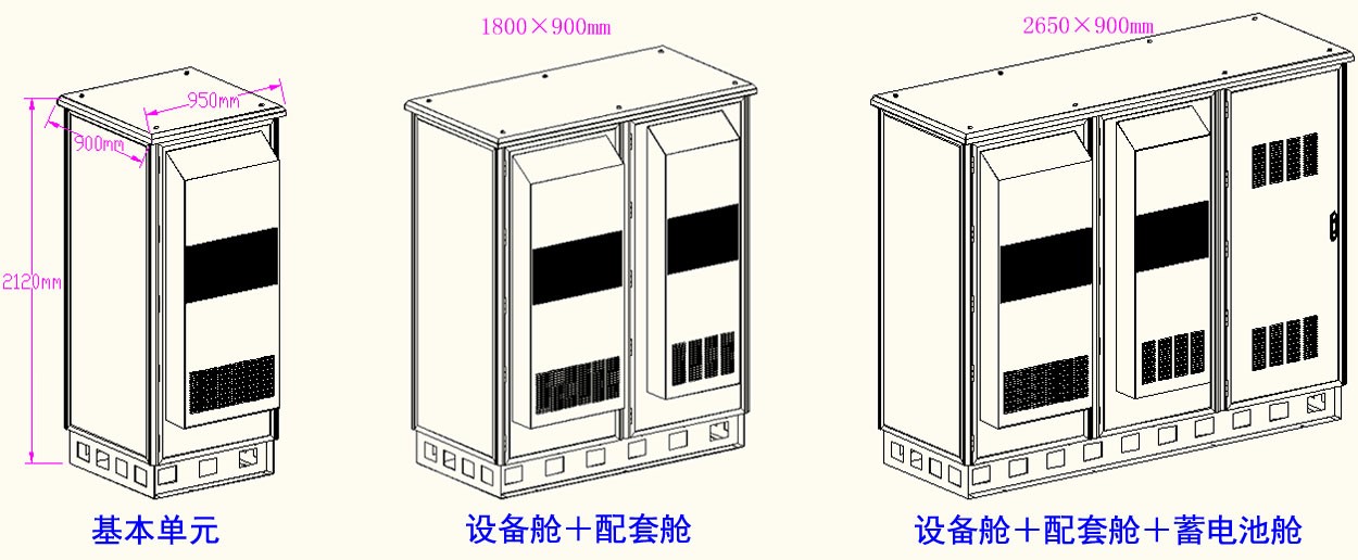 ◆ 模块设计,平滑扩容:按功能分为设备舱、配套舱、蓄电池舱三个基本功能单元,通过增加基本单元,方便扩容。