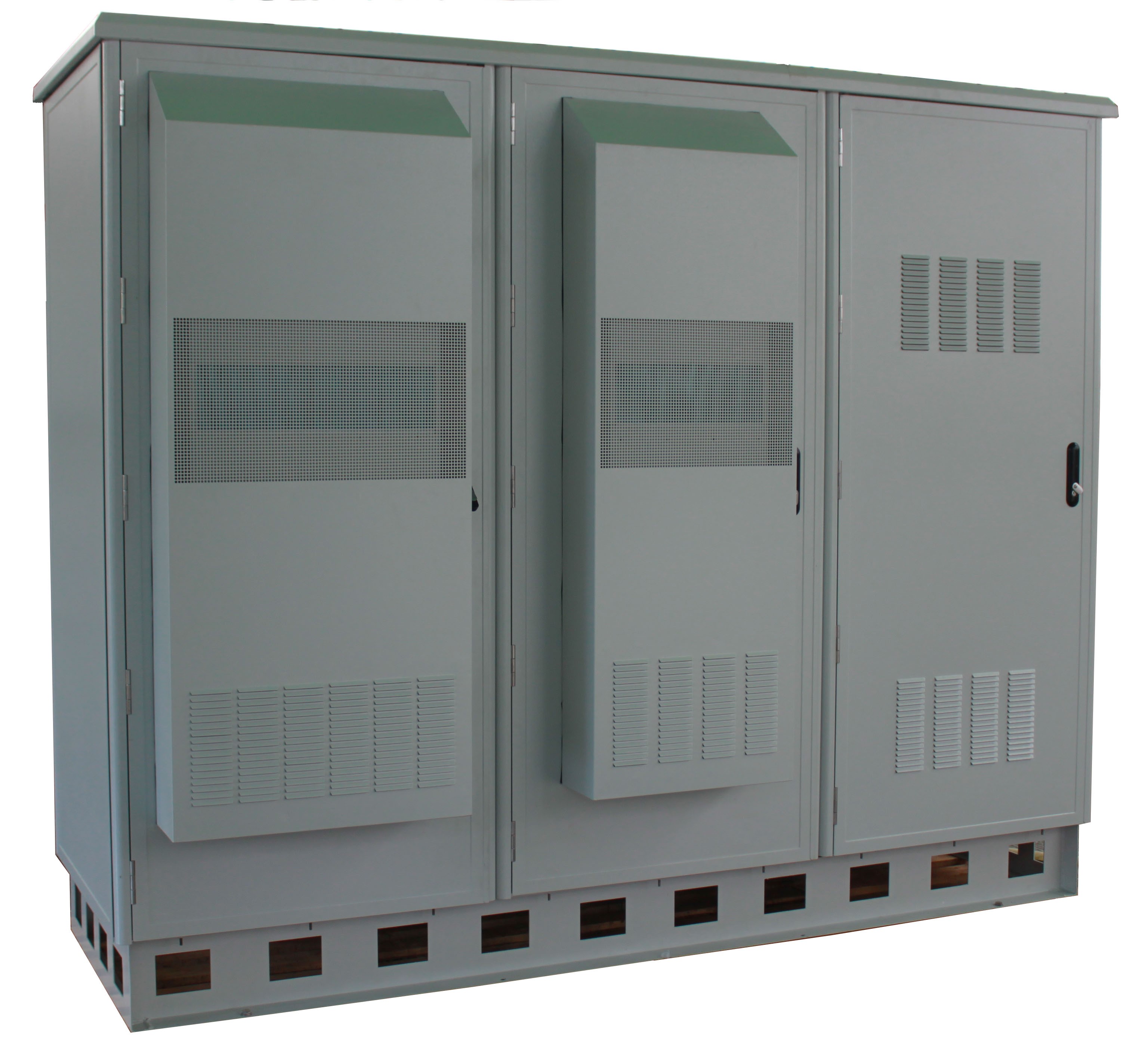 ◆ 小型紧凑,节约用地:室外一体化机柜采用紧凑化模块化设计,集成温控、通讯电源、监控、配电、防雷、ATS、电表等设备,较传统机房减少占地面积超过60%。