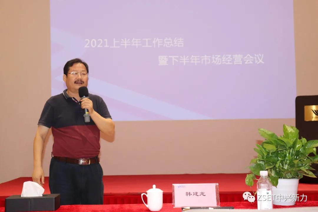 韩建龙总经理最后做了总结发言。韩总首先对上半年市场取得的业绩给予充分肯定。上半年尽管受疫情等国内外大环境不利因素的影响,公司仍取得了较好的销售业绩,销售收入达到2.1亿元,实现了任务过半,是近几年来少有的好成绩。特别是安徽中兴聚力上半年销售达到1.09亿元,完成了全年目标的70%,而且经营状况有不俗的表现。韩总在此予以表扬,并代表公司向中兴聚力全体员工表示祝贺和感谢!韩总要求下半年业务人员要更加贴近市场,贴近客户,强化沟通,真心实意服务好客户,脚踏实地,从头开始,把下半年工作做好。华东市场要抓住国家新能源发展的机遇,在上半年取得良好业绩的基础上继续扩大长三角优质市场,完成1.1亿元销售目标。ZTE、ODM市场的全年目标任务不变,要找差距弥不足,下半年迎头赶上。为了提高竞争力,ZTE市场今后也可以开拓外部市场。公司将制订详细的激励考核措施,激励业务人员努力完成全年的销售目标。生产制造中心和平台部门会后要把会议讨论形成的对市场的支持措施落到实处。