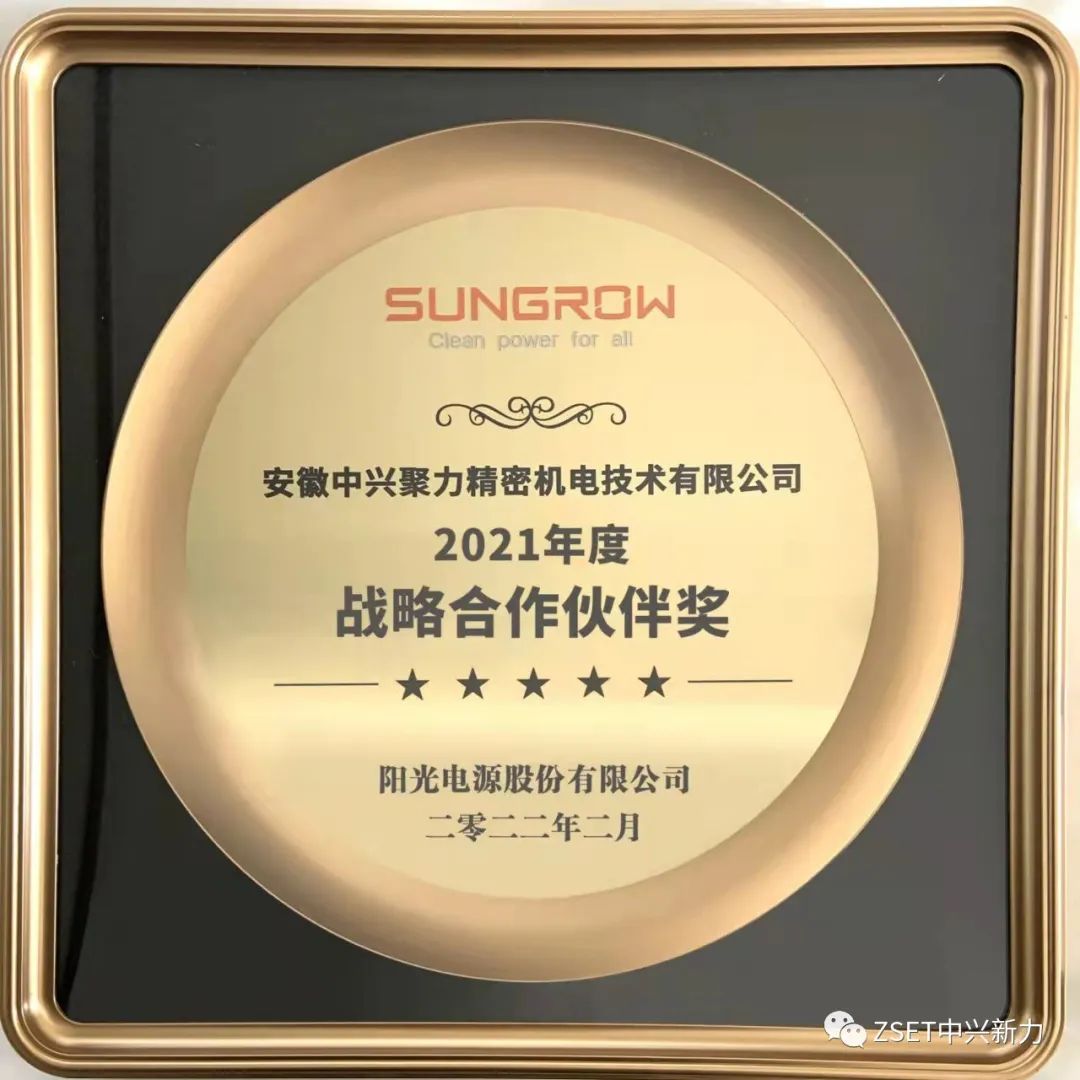 2022年2月25日,以“碳索创新 链接未来”为主题的2022阳光电源全球合作伙伴大会在合肥隆重举行。我司全资子公司安徽中兴聚力受邀参加此次盛会,并荣获大会“2021年度战略合作伙伴奖”。